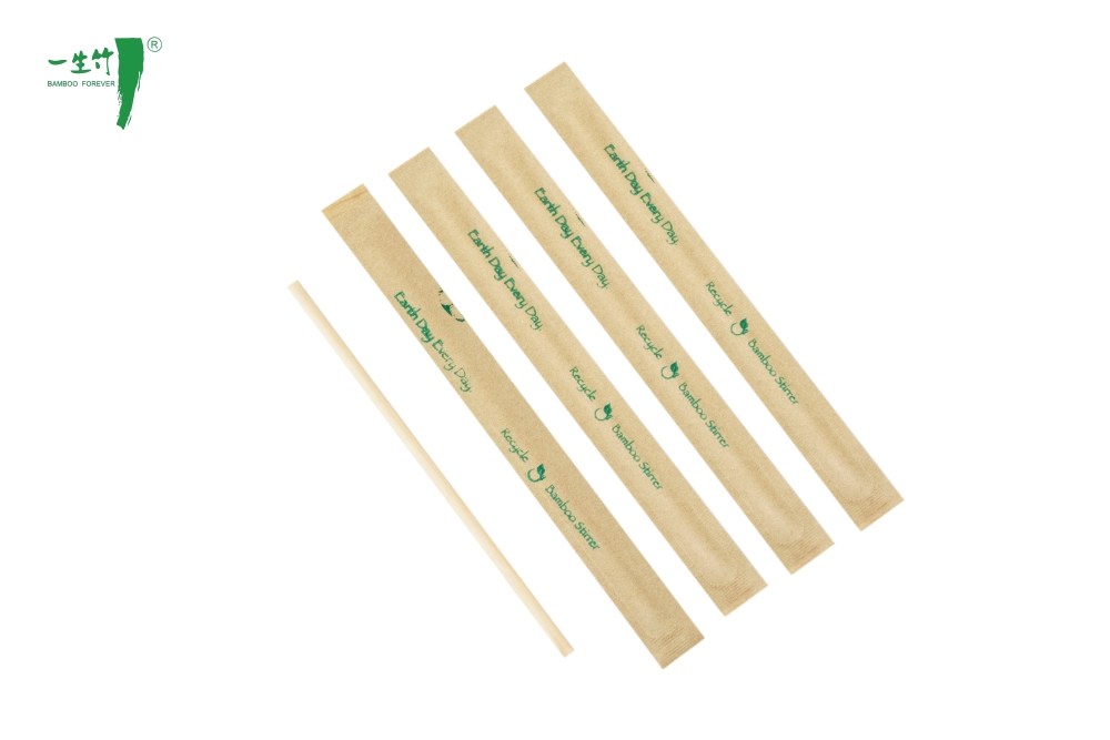 عصا تحريك القهوة البامبو المغلفة ورقيًا لكل قطعة على حدة